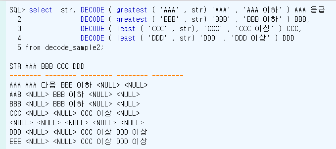 3 DECODE ( least ( 'CCC' , str), 'CCC' , 'CCC 이상' ) CCC,