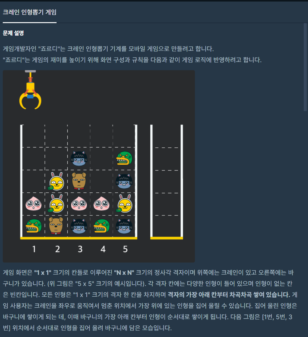 게임개발자인 "죠르디"는 크레인 인형뽑기 기계를 모바일 게임으로 만들려고 합니다.