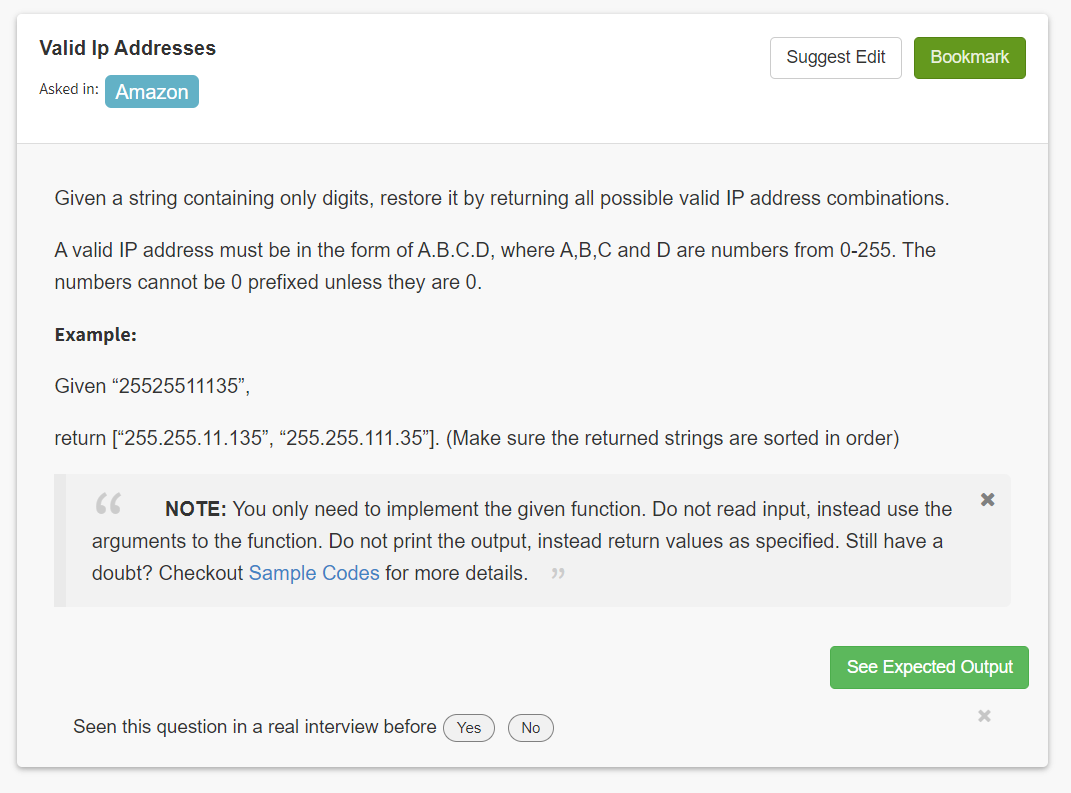 return [“255.255.11.135”, “255.255.111.35”]. (Make sure the returned strings are sorted in order)