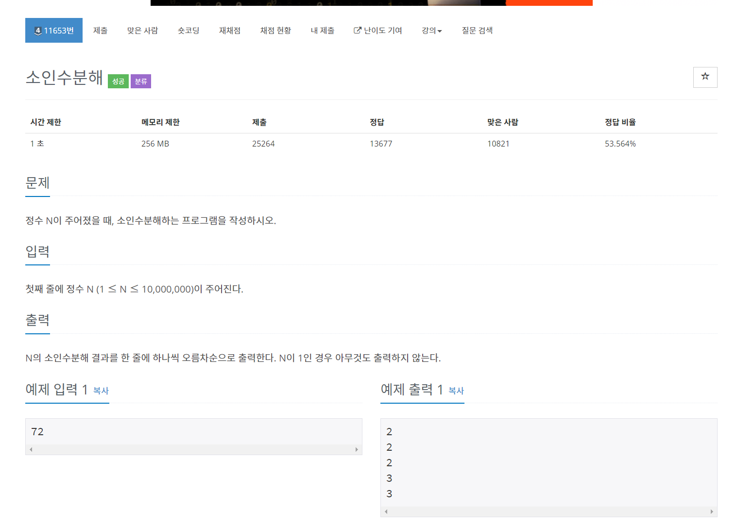 정수 N이 주어졌을 때, 소인수분해하는 프로그램을 작성하시오.