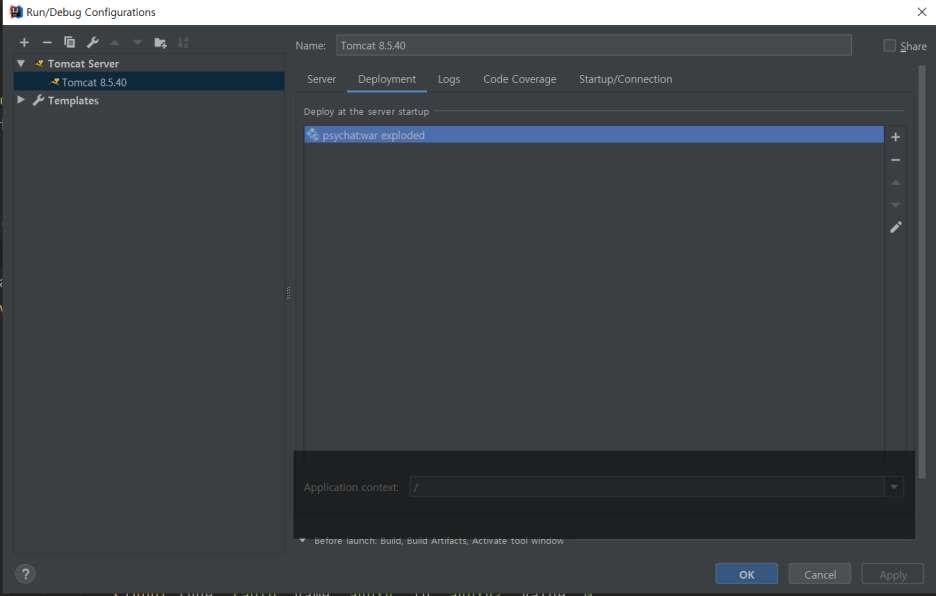 IntelliJ :: 프로젝트 별 Edit Configurations (Tomcat) -> Deployment -> Application Context